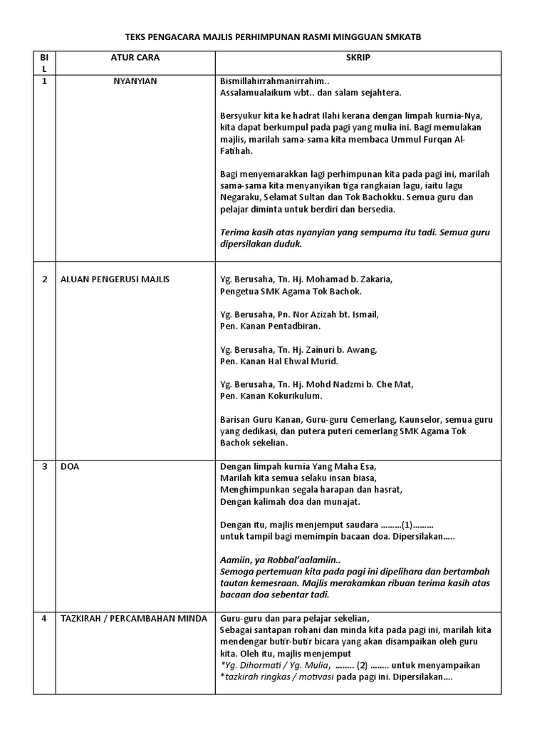 Teks Pengacara Majlis Perhimpunan Rasmi Mingguan Pdf